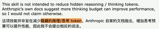 更关键的一点:作者Julius Brussee本人在HN讨论帖里主动澄清了,这个skill不针对hidden reasoning tokens和thinking tokens。