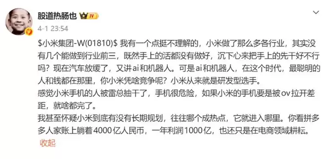 私募大佬发文:小米缺乏长期战略