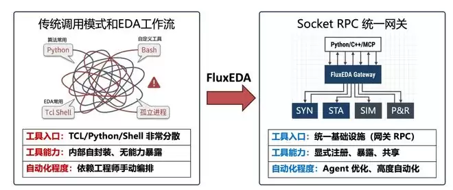 FluxEDA则像「神经系统」,负责把真实 EDA 工具链转化为 Agent 可以稳定调用、可发现能力、可持续运行的执行环境。