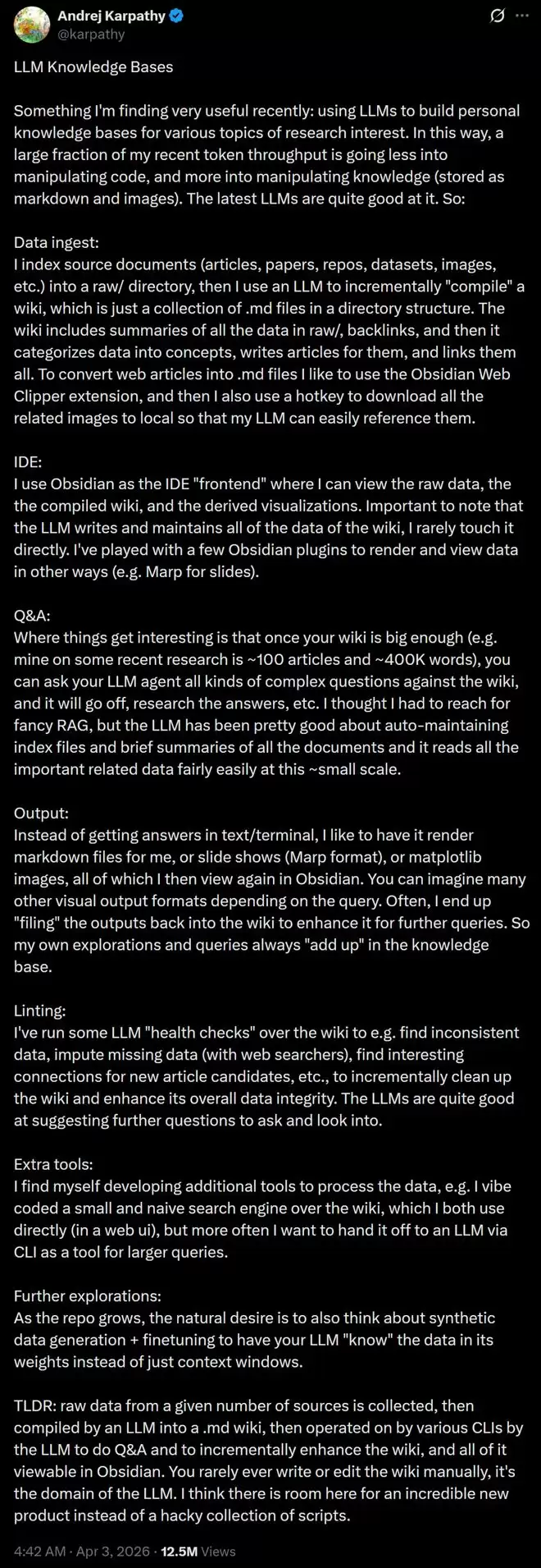 卡帕西引爆硅谷!公开「第二大脑」黑科技,1250万人围观
