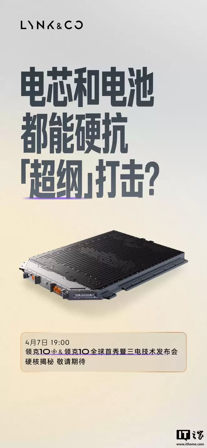 IT之家 4 月 6 日消息,领克汽车最新今日宣布,领克 10+ & 领克 10 全球首秀暨三电技术发布会定档 4 月 7 日 19:00 举行,将解答电芯和电池能否硬扛「超纲」打击、连续 100