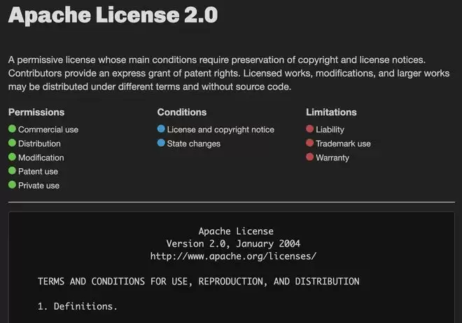 ▲Apache License 2.0开源协议核心条款说明(图源:devmandan)