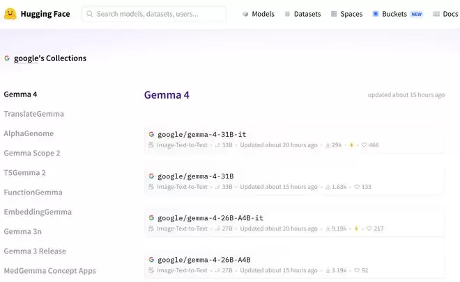 ▲Gemma 4最新模型集合页面(图源:Hugging Face)