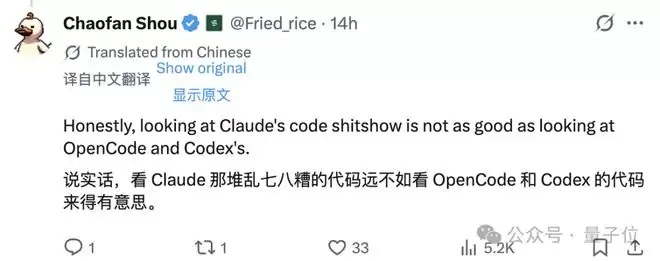 Jay 发自 凹非寺量子位 | 公众号 QbitAI扒光Anthropic底裤的人,究竟是谁?答案揭晓——一位年仅25岁的中国小伙,Chaofan Shou。仅凭一条帖子便引爆全网,从60MB的so