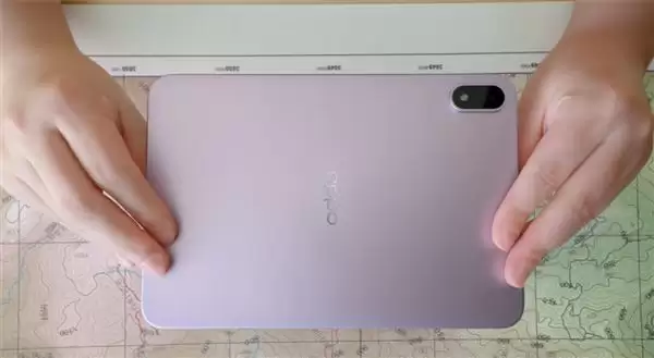 外观OPPO平板家族化设计语言,采用一体式金属机身,后置镜头模组为小药丸造型,并内置闪光灯,整体风格简洁利落。