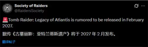 《古墓丽影:亚特兰蒂斯遗迹》发售或延期至2027年,档期博弈成关键