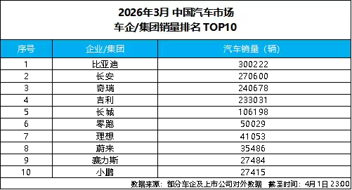 比亚迪 3 月销量强势突破30万辆,获中国车企销量冠军