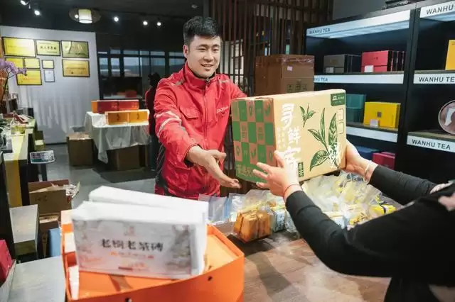 除了科技赋能,京东快递的人力与运力保障也同步升级。围绕春茶“赶鲜”需求,京东快递在信阳毛尖主产区投入的专揽人员较往年翻倍,同时在茶园、茶叶市场周边增设临时揽收点,让茶农、茶商在家门口就能便捷完成寄递。此外,京东快递整合公铁空等运力,开通春茶寄递绿色通道,通过优先分拣、优先发车、优先派送,让信阳毛尖实现从产地到全国核心城市“夕发朝至”。