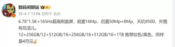 4 月 7 日,REDMI K90 Max 正式官宣,小米集团创始人雷军亲自转发,强调该机是 “性能魔王”。小米合伙人卢伟冰补充,这是 K 系列史上最强性能旗舰,内置风冷主动散热、165Hz 超高刷