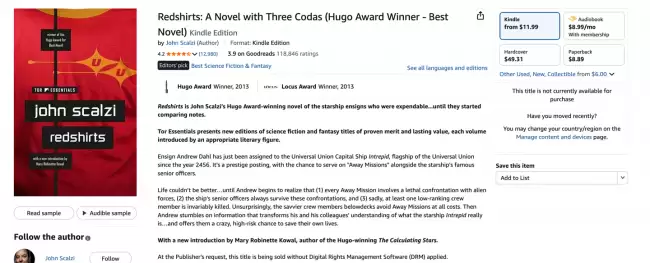 亚马逊此次更新考虑得颇为周全。近期,细心的用户可能已经发现,在Kindle商店的商品详情页面中,新增了明确的DRM状态标识。通常在图书描述信息下方,会出现一行提示:“根据出版商要求,本书在销售时未应用数字版权管理(DRM)软件。”这一标识为消费者提供了清晰的预购指引,确保其在购买前就能准确了解该电子书是否具备“开放”与“可跨平台使用”的特性。