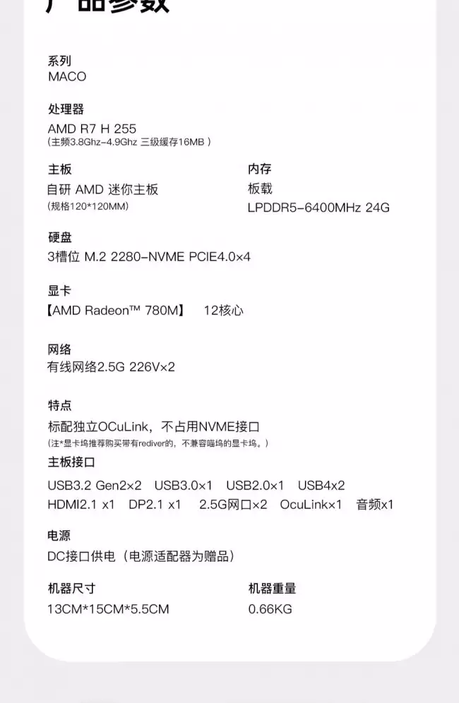 天钡 MACO 255 迷你主机发布:搭载锐龙7 H255,双USB4与三硬盘位成最大卖点 迷你主机领域再添强劲新品。天钡(Tianbei)正式推出MACO 255迷你电脑,其核心搭载了性能强劲的AMD锐龙7 H255移动处理器,并创新性地板载了24GB LPDDR5-6400高频内存,有效释放核显