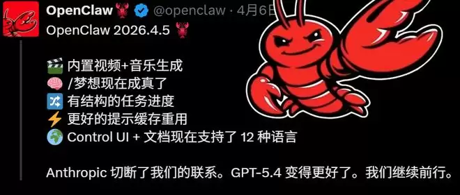说来也巧,就在几天前被Claude正式“封杀”之后,OpenClaw没有沉寂,反而在昨天放出了4.5版本的重磅更新。这一波操作,直接把讨论热度拉满了。新版本不仅将Claude CLI从新用户的默认后端选项中移除,还重构了备受关注的梦境系统以强化记忆,更关键的是,内置了视频和音乐生成工具,让用户再也不用费心去找第三方插件。难怪有网友评价这是“爽文剧本照进现实”——刚刚被封杀,转头就做出了一个更强的自己。