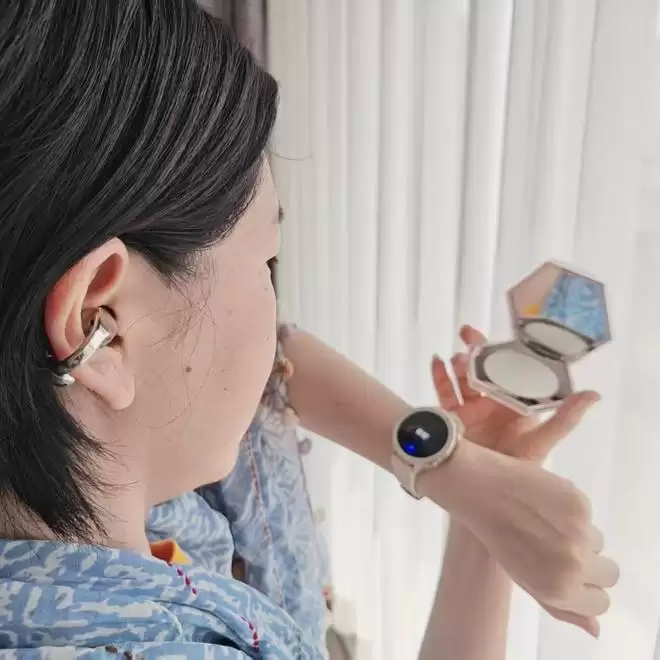 将OPPO Watch X3 Mini 与 Enco Clip2 一同佩戴,再搭配简约的金色系配饰与干净自然的妆容,一套完美的高智感职场穿搭便自然成型。腕间与耳畔的鎏金光泽相互呼应,既有智性从容的科技感,又不失精致闪耀的时尚度,恰好诠释了现代女性在职场干练与生活松弛之间的平衡之道。而 FENTY BEAUTY 星钻高光粉饼的加入,让这场“高光穿搭”形成了从科技到美妆的完整闭环——从腕间到耳畔,再到面部的精致提亮,每一处细节都在生动演绎着 “我的高光时刻” 的核心内涵。