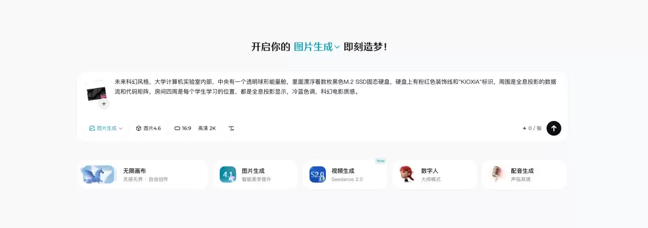 从官方提供的素材包里挑一张铠侠产品的高清图,上传到即梦作为参考。