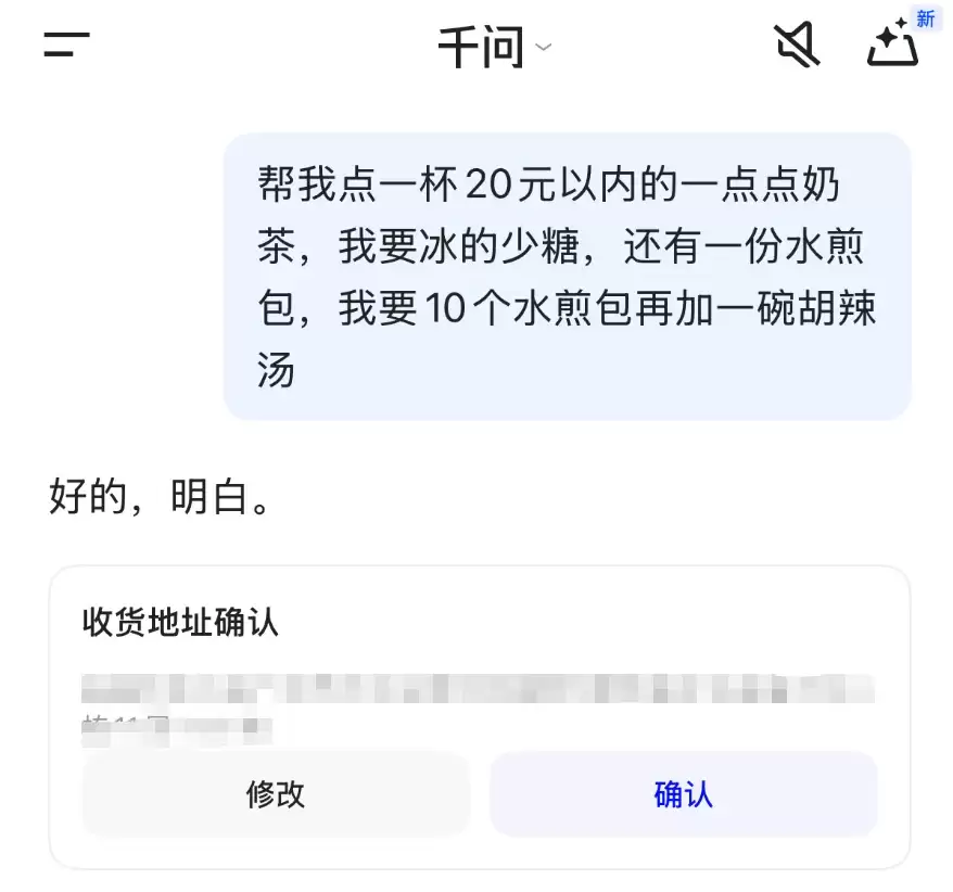 宣传中那些一气呵成点N杯奶茶的演示固然炫目,但实际好不好用,还得亲手试过才知道。于是,一个简单的指令被下达:“一杯20元以内的一点点奶茶,再加10个水煎包和一碗胡辣汤。”