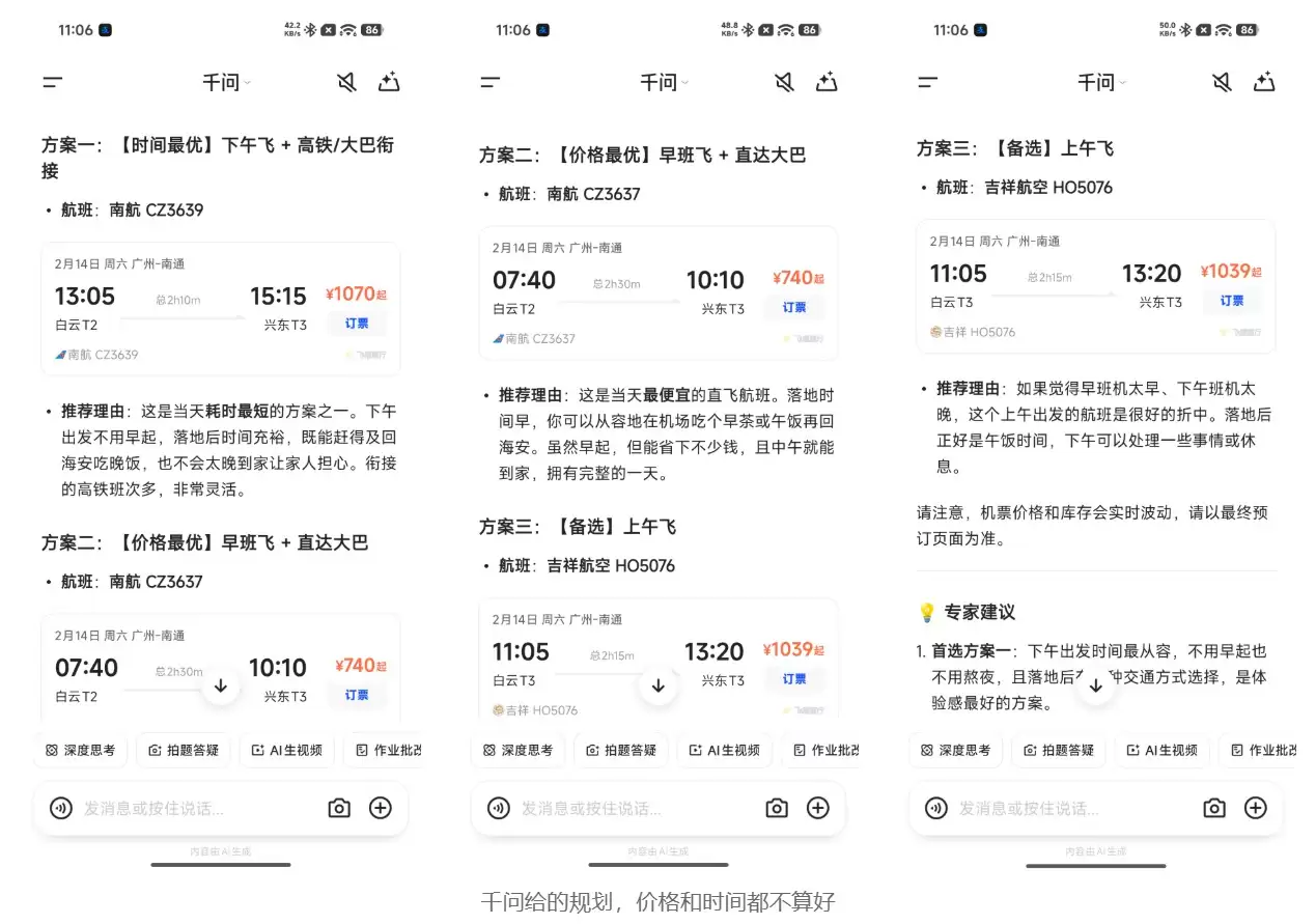 那么,千问的这次更新只是个噱头吗?显然不是。当我们抛开那些“点100杯不同口味奶茶”的炫技式演示,其“任务助理”功能真正的实用性才得以显现——尤其是在复杂行程规划方面。