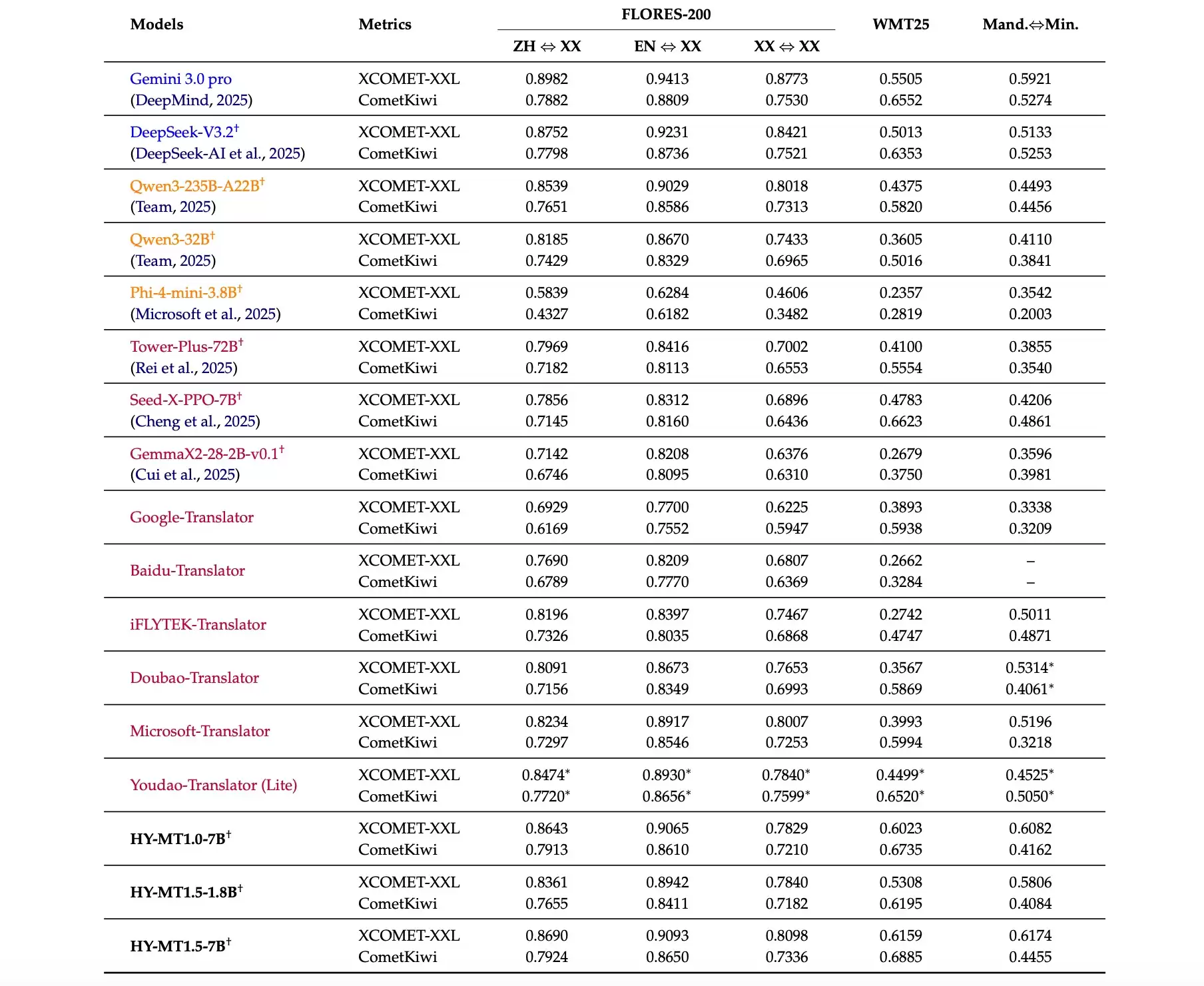 当然,速度快绝不意味着牺牲质量。在翻译质量的权威标尺——WMT25和Flores200测试集上,混元翻译模型1.5交出了一份令人惊讶的答卷。1.8B版本尽管主打轻量化,其翻译水准却丝毫不弱。评测数据显示,它已达到谷歌超大规模闭源模型Gemini-3.0-Pro约90%的水平。这个数字不仅是一次胜利,更打破了业界对小参数模型“能力有限”的固有认知,完美诠释了如何在质量与效率之间找到那个黄金平衡点。