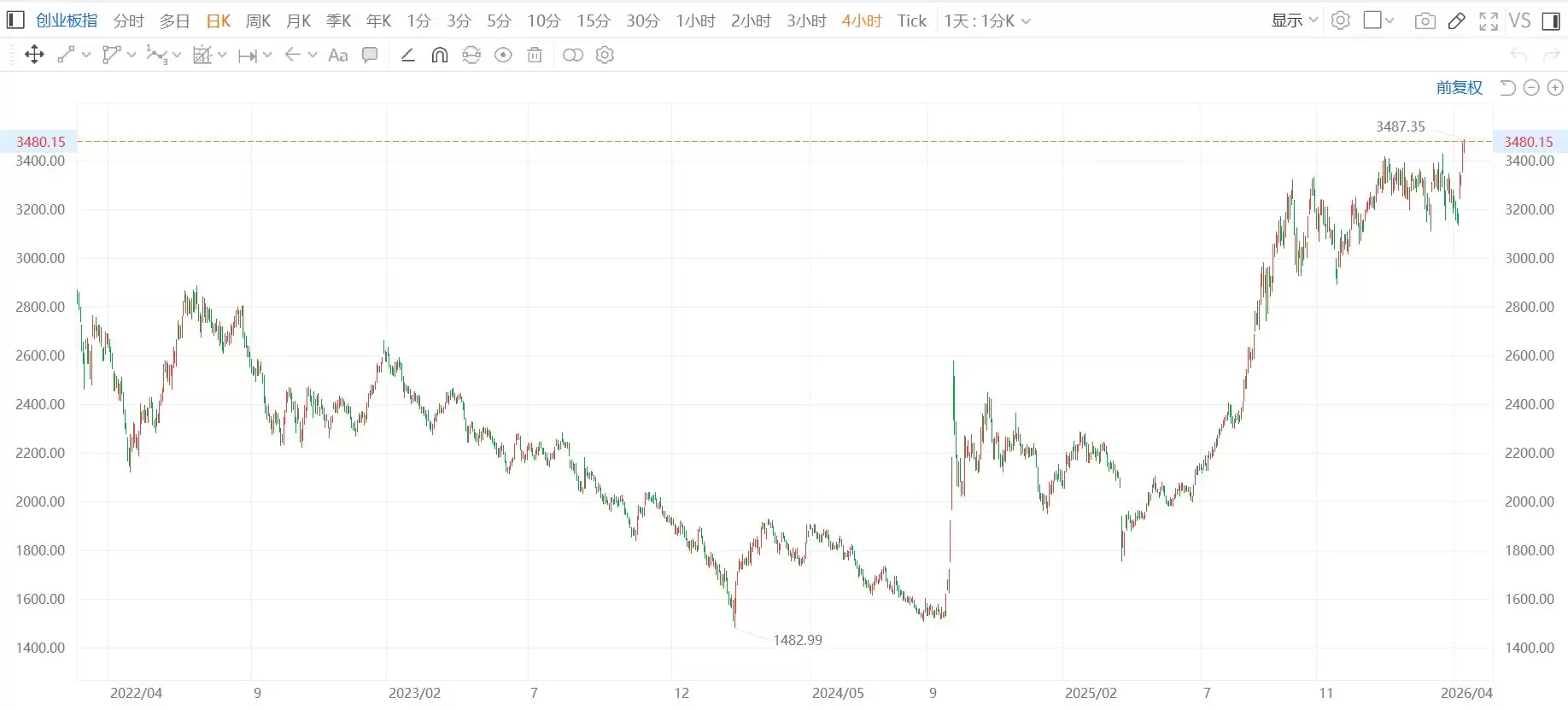 创业板指涨超1%创逾4年新高 超2200股上涨