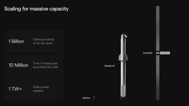 发布会的震撼弹不止于此。马斯克还首次向公众展示了未来“迷你人工智能数据中心卫星”的设计概念图。这些卫星将成为SpaceX庞大卫星系统的一部分,专门用于在太空轨道上进行复杂的AI计算。为了推进这一构想,SpaceX在今年1月已向美国联邦通信委员会(FCC)提交申请,计划发射多达100万颗此类数据中心卫星。