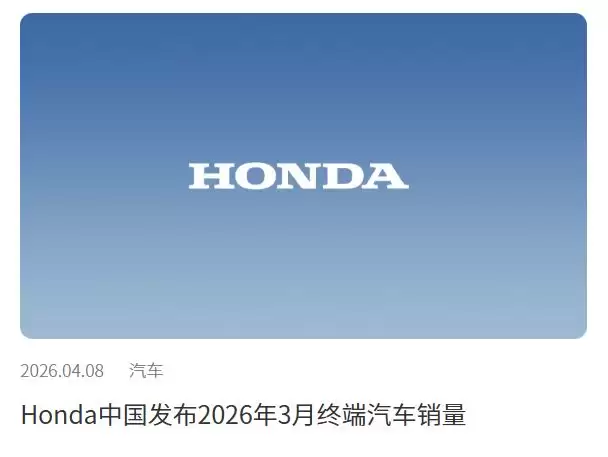 4月8日,本田汽车正式发布了2026年第一季度在中国市场的终端汽车销售业绩。核心数据解读如下: