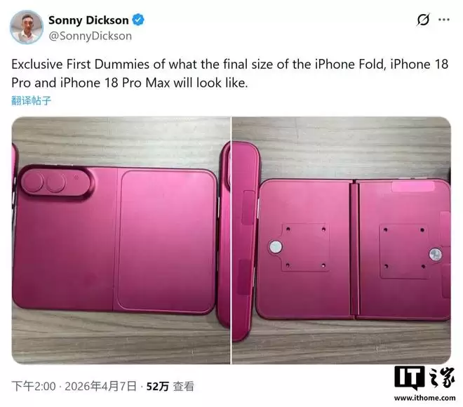 科技圈总不乏惊喜。就在最近,知名爆料人Sonny Dickson和Majin Bu在社交平台X上,直接甩出了一组图片和一段视频,主角正是备受期待的苹果未来机型——iPhone 18 Pro、iPhone 18 Pro Max,以及更引人遐想的首款折叠屏iPhone Fold的实体机模。