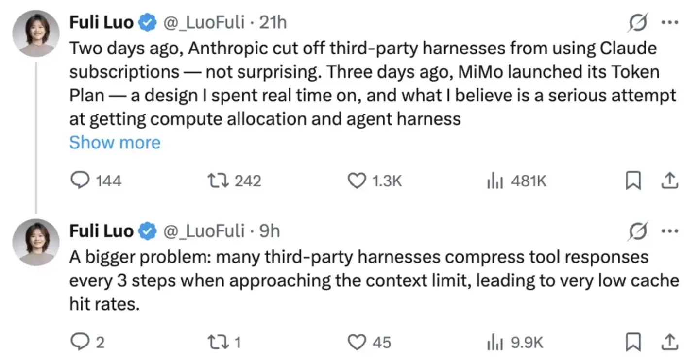 Anthropic宣布禁止第三方接入工具“龙虾”后,引发了业内的广泛讨论。小米大模型团队负责人罗福莉凌晨发布的深度分析,则将这场讨论推向了更核心的层面。