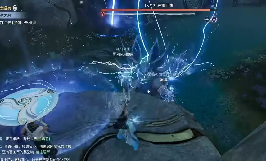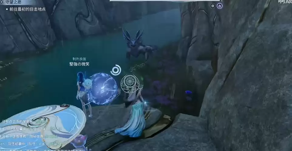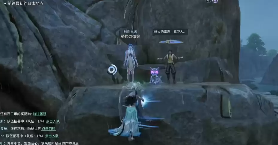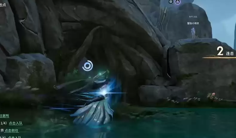 成功吸引仇恨后,切勿原地作战。应引导BOSS向左后方移动,前往左侧山洞旁一块站立着NPC的岩石。