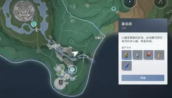 首先,我们需要传送到墨焰阁的传送点,这是挑战辰雷巨蜥的起点。