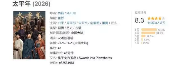 《太平年》播出后热度持续攀升,豆瓣评分稳定在8分以上。但伴随高口碑而来的,也有不小的讨论。不少观众直言“人物关系复杂、信息密度大,理解起来有难度”,认为该剧的观看门槛相对较高。