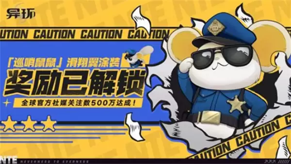 重磅喜讯!备受期待的都市开放世界角色扮演游戏《异环》,其全球社交媒体关注总量已正式突破500万大关。为庆祝这一重要里程碑,官方特别解锁了一份独家纪念奖励——滑翔翼涂装「巡哨鼠鼠」。