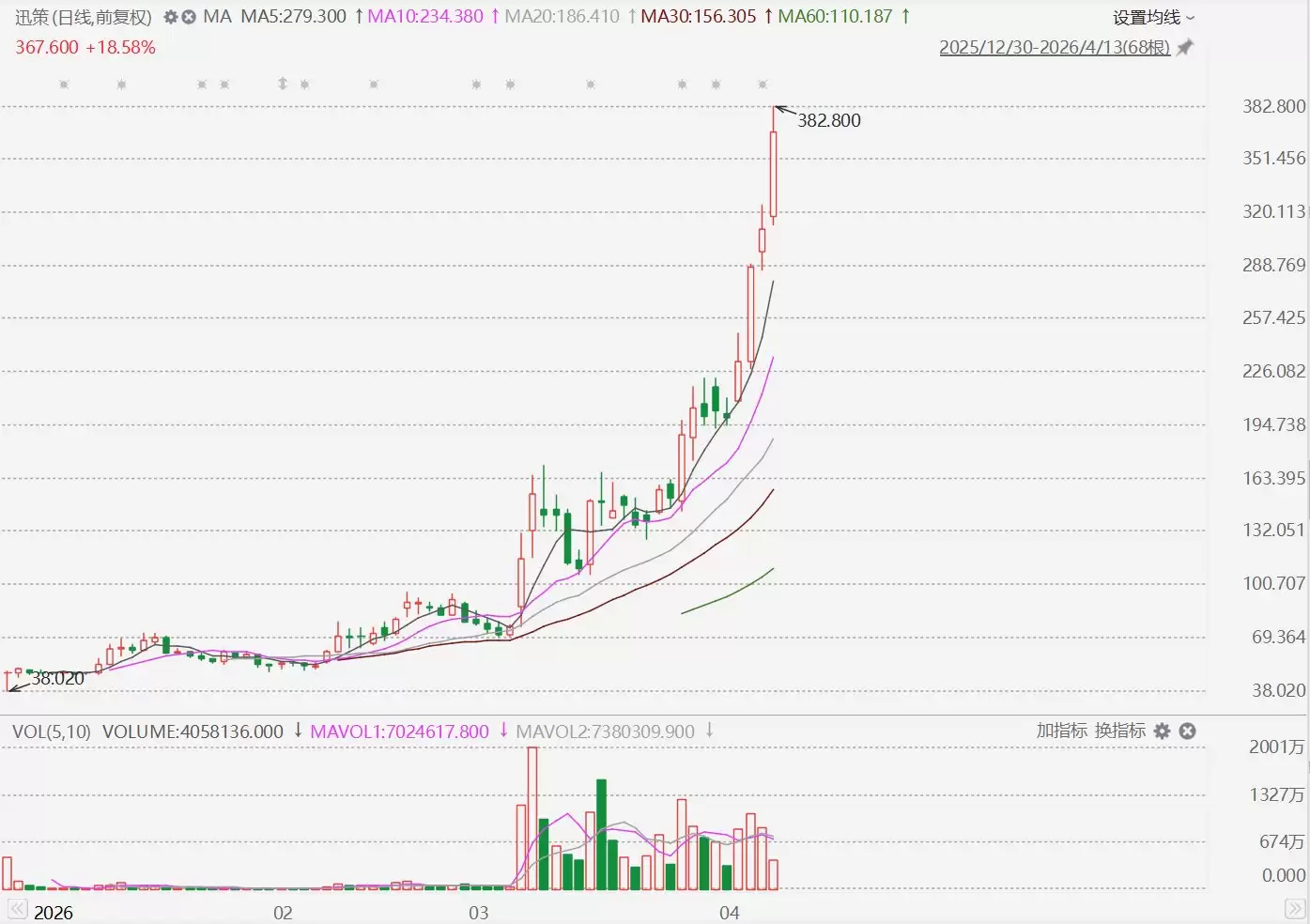 港股市场“词元第一股”盘中飙升,市值突破1200亿港元 港股市场今日迎来重磅行情。被誉为“词元第一股”的迅策科技(3317 HK)股价盘中强势拉升,一度暴涨超23%,最高触及382 8港元,刷新上市以来历史最高纪录。在股价强劲走势的带动下,公司总市值成功站上1200亿港元大关。纵观年内表现,该股累计