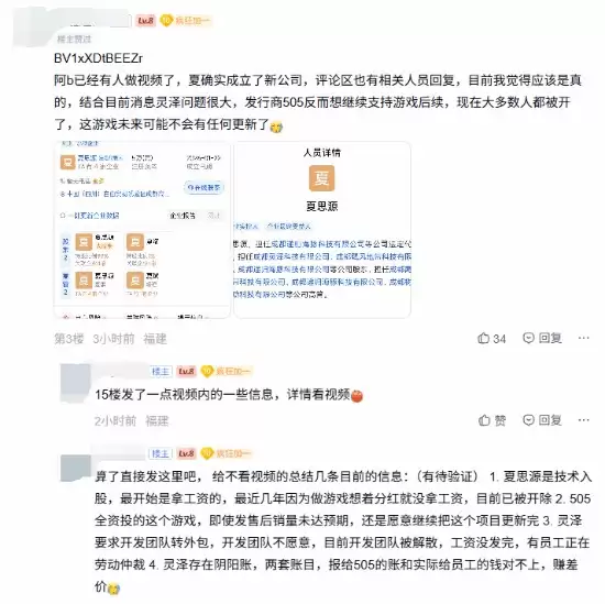 其实,关于夏思源的动向,坊间早有风声。在此之前,B站知名UP主“贞子菇凉”就曾发文暗示,夏思源离开原团队已有一段时间,并且仍在继续从事游戏开发工作。顺着这个线索,网络上也流传出另一种说法,称其可能已经成立了新的公司,以继续推进《明末:渊虚之羽》或其他项目。当然,这些传闻听起来有鼻子有眼,但截至目前,尚未有任何权威渠道能予以证实。