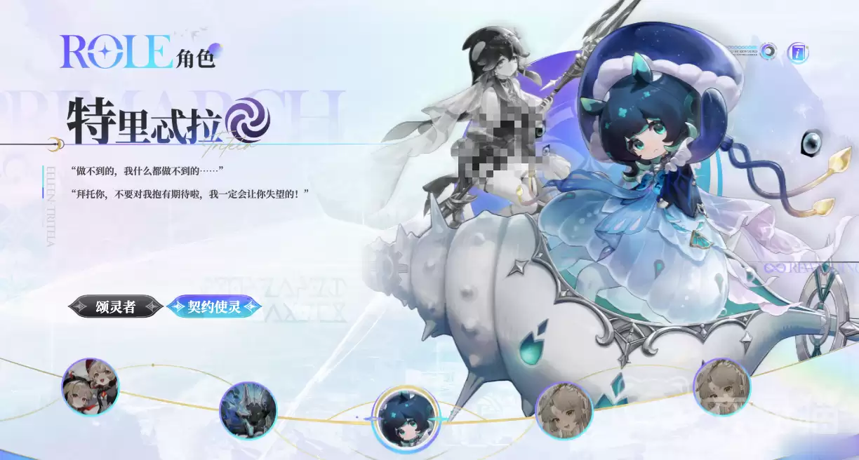 其契约使灵特里忒拉,是一只半透明的水母,性格同样偏向保守。但在实战中,它却是顶级的冰属性控场核心。无论是通过冻结、减速来压制Boss行动,为队友创造安全的输出环境,还是在解谜关卡中,利用高精度探测快速破解机关、发现隐藏路线,特里忒拉都能极大提升队伍的通关效率与稳定性,是潆战术意图最完美的执行者。