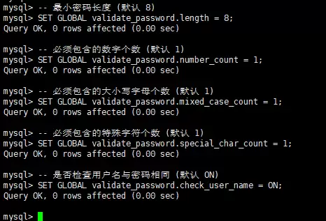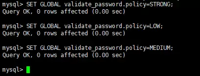 mysql> SET GLOBAL validate_password.policy=STRONG;