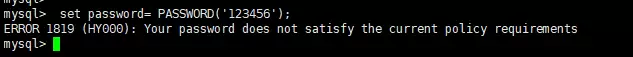 ERROR 1819 (HY000): Your password does not satisfy the current policy requirements