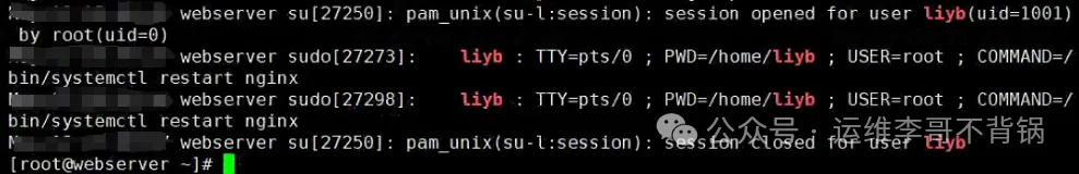 这条规则去掉了NOPASSWD。效果是:用户liyb确实可以用sudo来重启Nginx,但每次执行都必须输入自己的密码。而且,他只能执行这一条命令,无法用它执行其他任何操作。