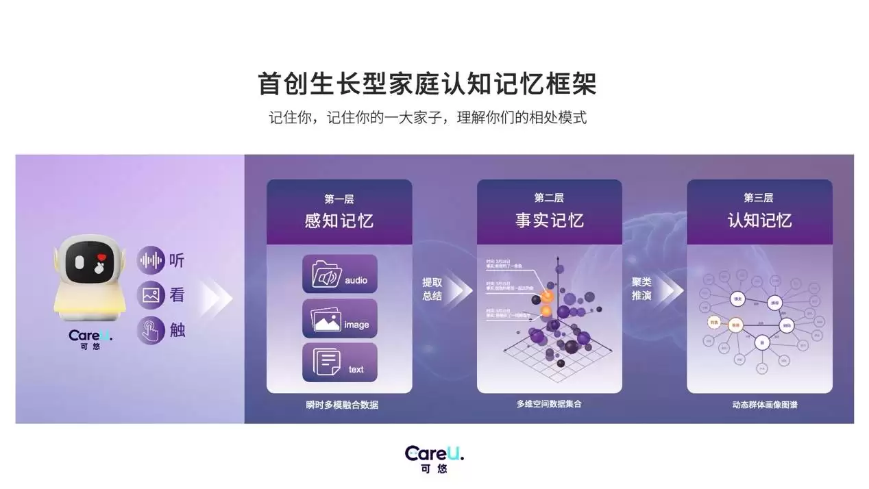 针对家庭场景成员固定、关系复杂的特点,可悠首创了一个“生长型认知记忆框架”。这个体系通过三层记忆逻辑,试图全面“理解”一个家庭: