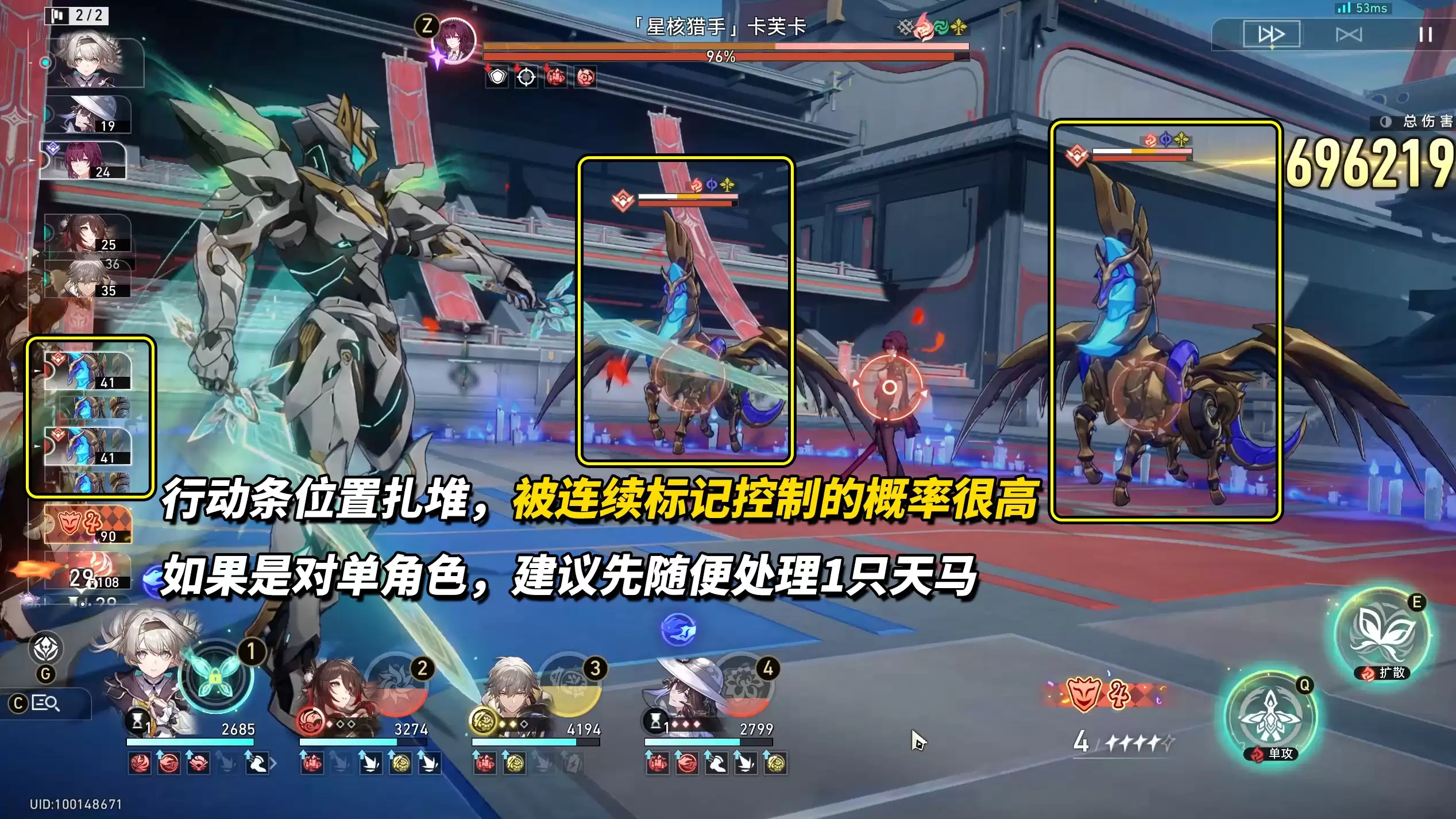 由于是双天马配置,它们的行动条通常紧密相连,极易造成连续标记与控制,使战局陷入被动。因此,若能优先击杀其中任意一只“月夜天马”,战斗压力将大幅减轻。