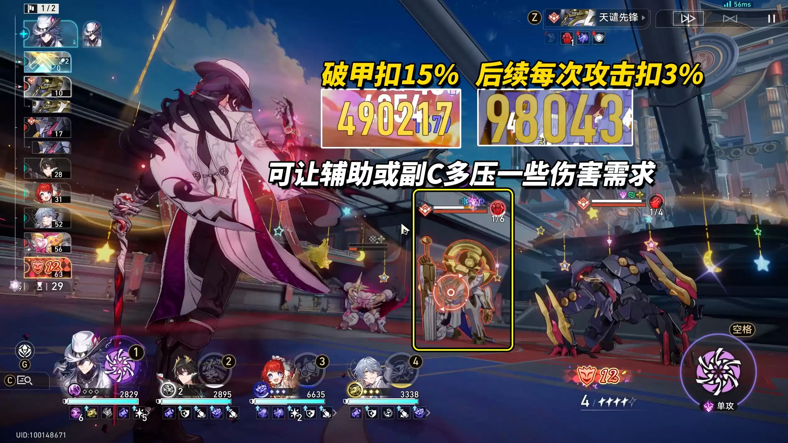 需重点关注“天谴先锋”。击破其韧性时,将直接扣除其15%最大生命值并为我方全体恢复能量。此外,当其处于击破状态时,每次受到攻击都会额外损失3%最大生命值。可巧妙利用此机制,指挥辅助或副C角色进行多次攻击,以快速压低其血线。