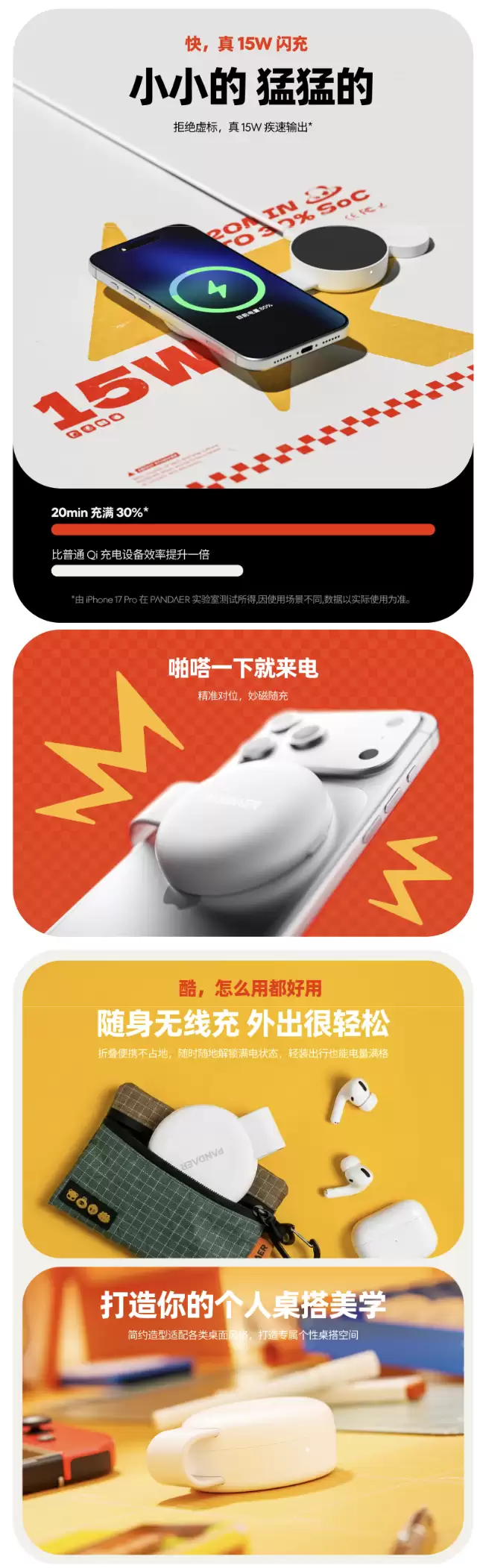 总体而言,这款PANDAER小汉堡三合一无线充电器精准定位了特定使用场景:它非常适合那些追求桌面整洁、经常需要移动办公或差旅出行的苹果多设备用户。凭借其独特的高辨识度外观和高度集成的多功能设计,它旨在竞争激烈的手机配件市场中,为用户提供一种既高效实用又充满趣味的充电新选择。