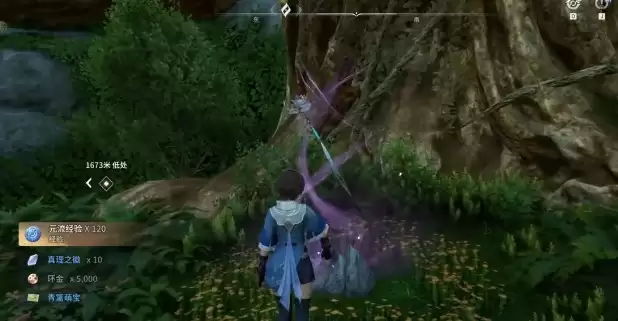 合成完成后,下一站是翠萝野。来到这里,前方一棵显眼的大树就是地标,树下隐藏着一个山洞入口。进入山洞需要一把神秘的钥匙。钥匙位于踏板玄门处,但这里有一个效率建议:建议先不要直接去拿钥匙。