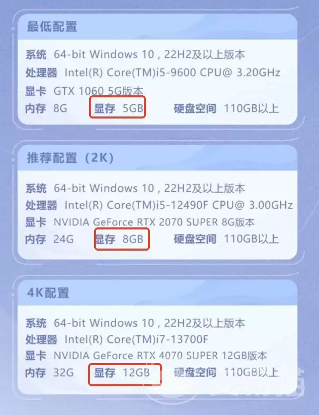 许多玩家容易忽略显存这一关键指标。在游戏初始化及加载高清场景、角色模型时,显存占用极高。若显存不足,极易在加载过程中发生崩溃、卡死或无响应。因此,检查显卡显存是否达标至关重要。