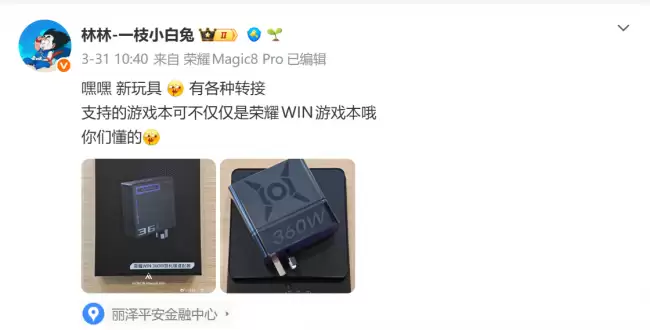 与此同时,荣耀高管陆续释放的爆料信息,也让产品的画像愈发清晰。据悉,产品将支持“猎人武器库”功能,包含高刷新率/触控板快捷开关、专属猎杀灯效等电竞设计。更值得一提的是,它将配备一个360W的氮化镓适配器,支持多种转接方案,甚至可以兼容其他品牌的游戏本使用,这在细节上考虑得相当周到。