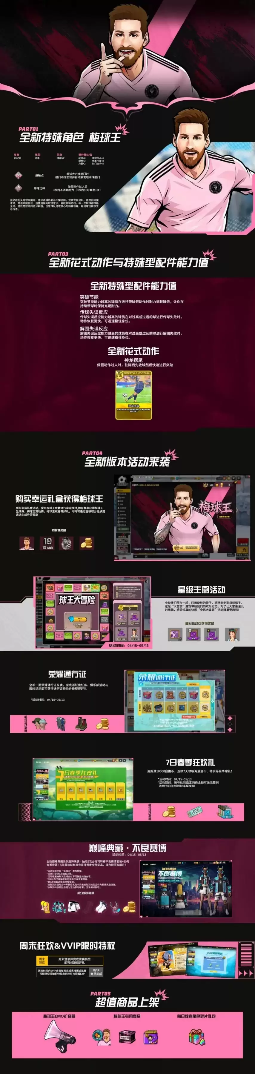 与角色同步开放的,是“球王大冒险”限时主题活动。此类活动通常包含系列剧情任务、挑战关卡及丰厚阶段奖励。玩家通过参与冒险,不仅能深入了解“梅球王”的专属背景故事,更能累计获取包括角色碎片、强化材料、限定称号在内的多种稀有奖励,是快速培养新角色、提升账号实力的绝佳机会。
