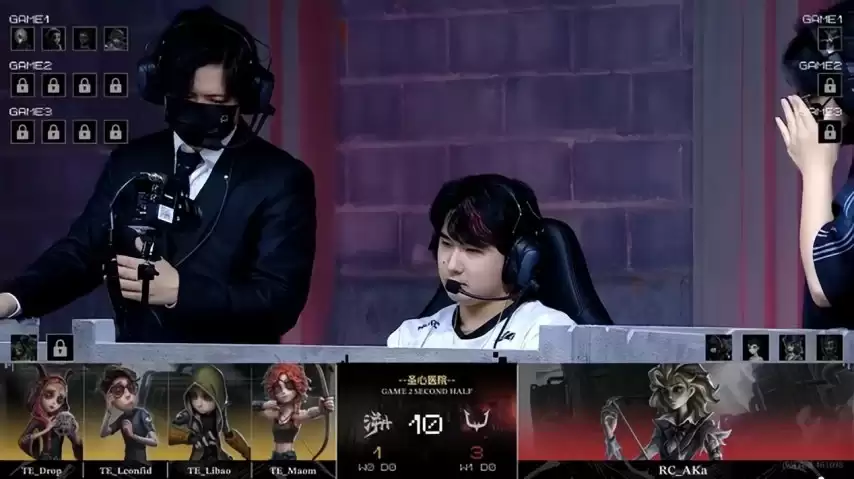 背水一战的TE求生者选择了祭司、幸运儿、佣兵与弓箭手的阵容,同样选择禁用“跛脚羊”;RC监管者AKa则选出“台球手”,并将ban位给到先知、古董商、幻灯师和野人。