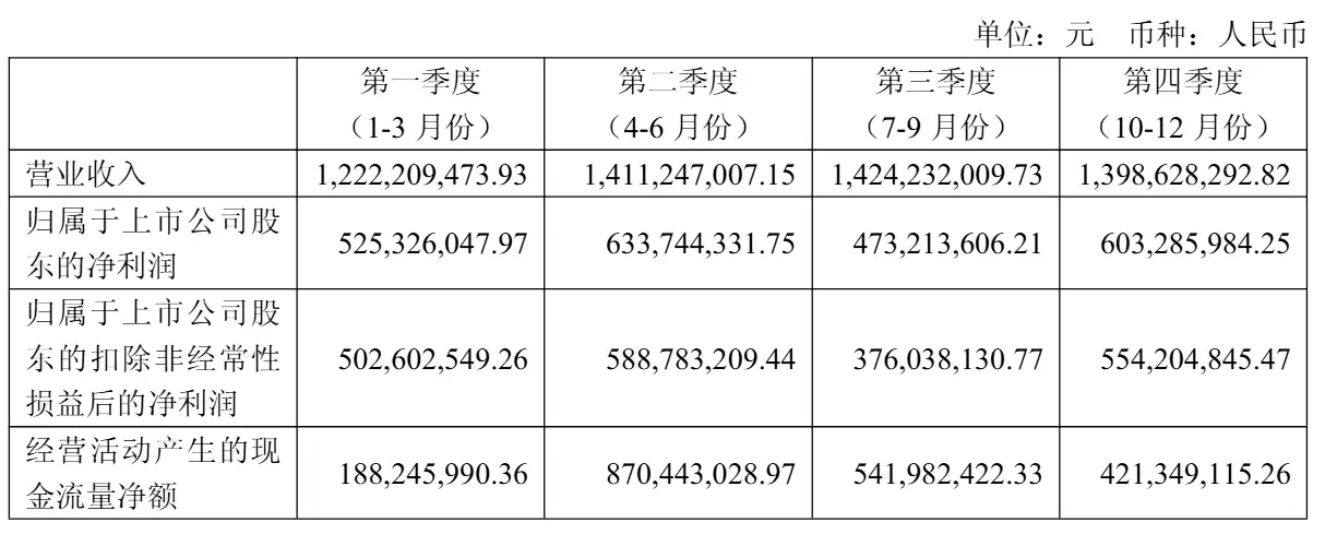 单看第四季度,表现同样稳健:当季营收14亿元,净利润6亿元,扣非后净利润为5.54亿元。这为全年的高增长画上了一个扎实的句号。