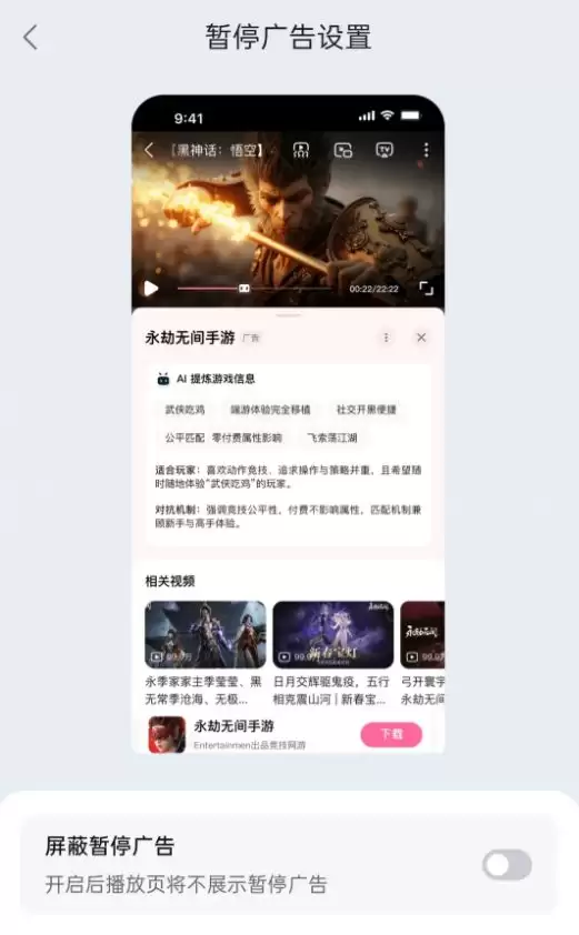 从网友提前曝光的设置页面截图来看(见图1),整个设计还算克制。广告区域与视频内容区隔清晰,关闭按钮(一个明显的“X”号)也足够醒目。这显然是在商业化和用户体验之间做的一次平衡尝试。
