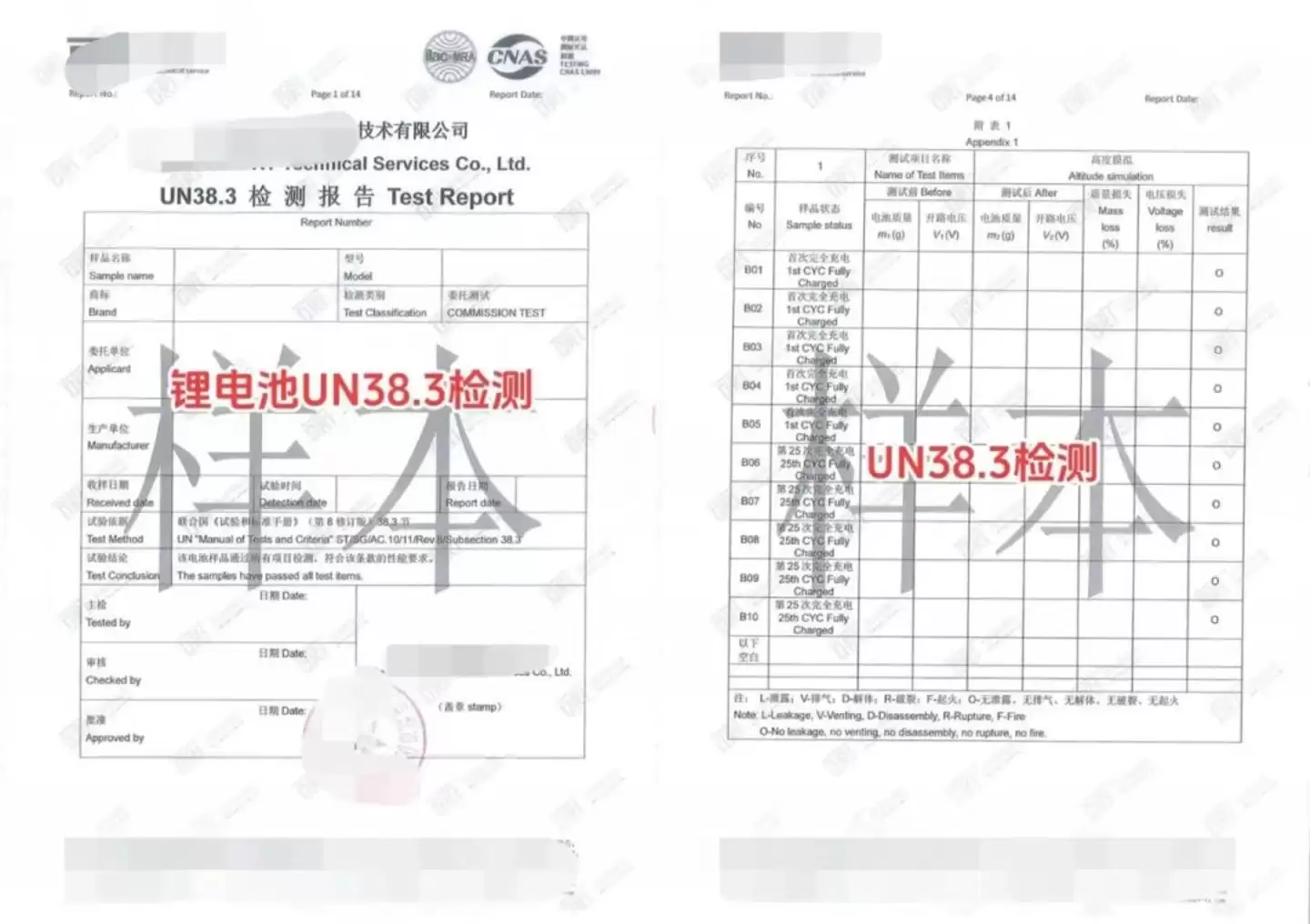 图/UN38.3检测报告样本