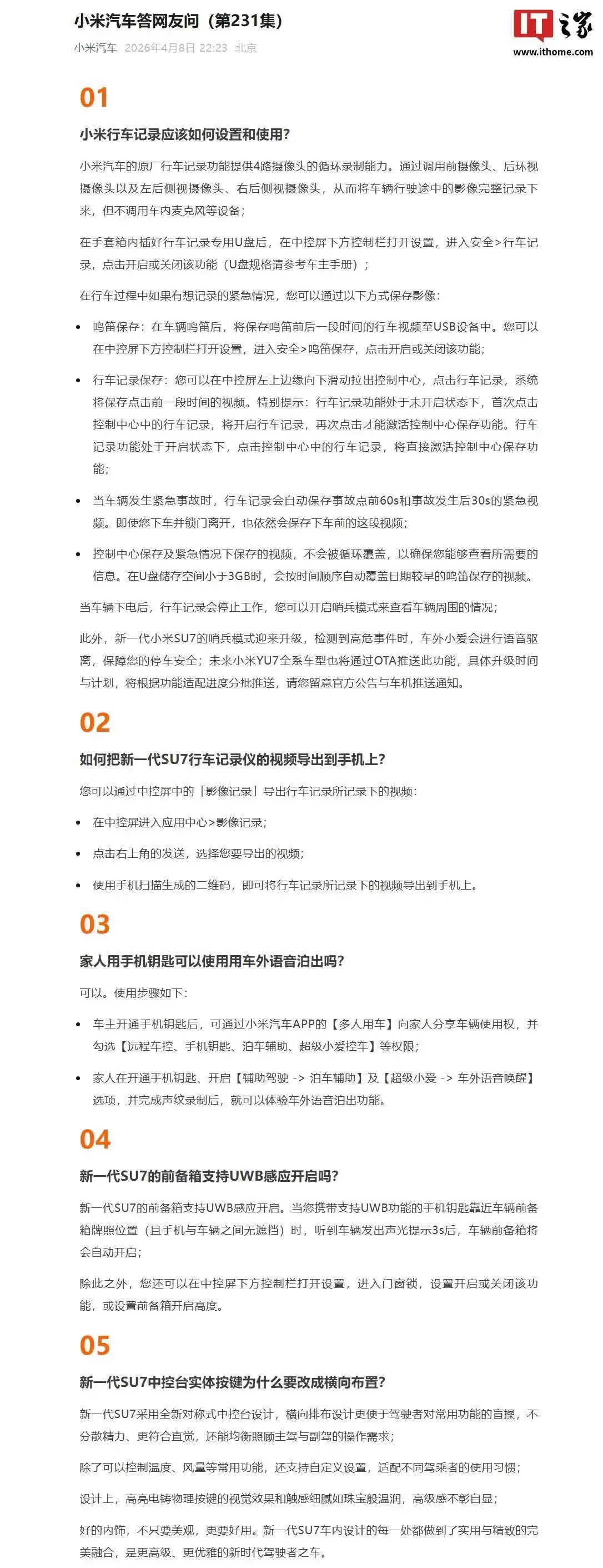 小米汽车最近通过官方渠道,发布了最新一期的“答网友问”。这期内容干货不少,集中解答了用户们普遍关心的几个问题,比如行车记录仪怎么设置、视频怎么导出,还有一些车辆功能的具体用法。可以说,这是一份相当全面的操作指南,能帮车主们更好地玩转自己的爱车。