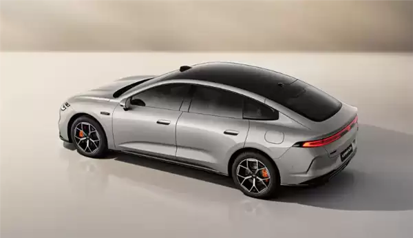 前脸部分,贯穿式的灯带设计搭配封闭式格栅,营造出鲜明的科技感。车身侧面的线条非常舒展,溜背造型是当下运动轿跑的流行元素,再配合无框车门和半隐藏式门把手,不仅视觉效果出众,更将整车的风阻系数优化到了惊人的0.205。低风阻对于提升电动车续航的贡献,不言而喻。